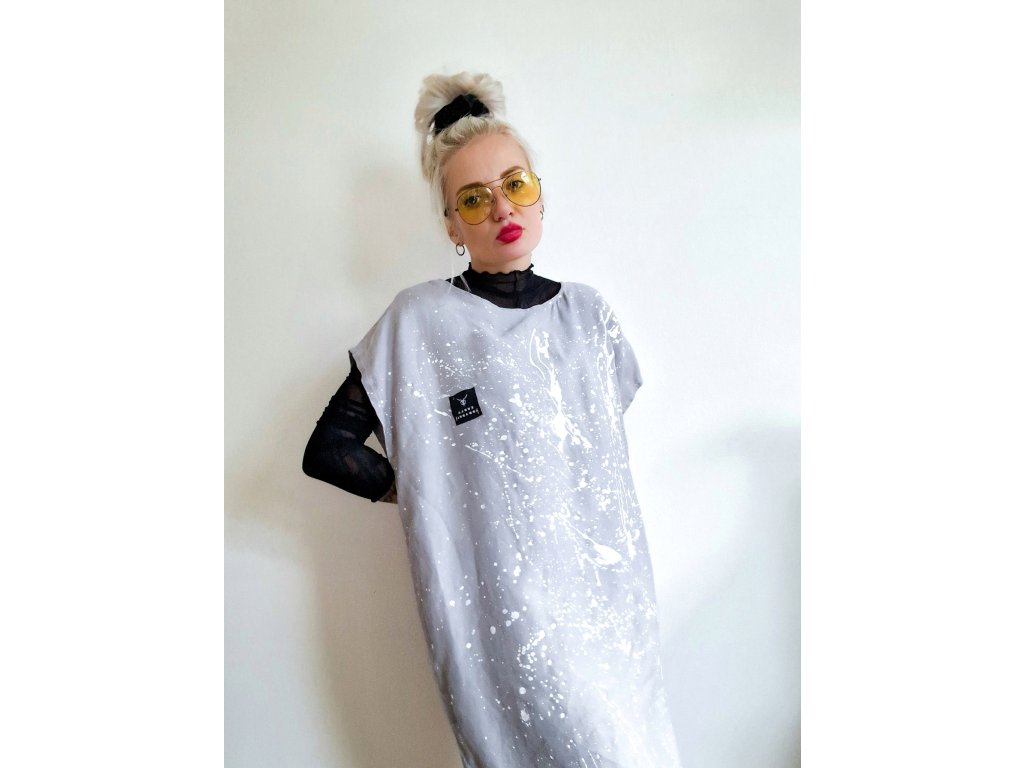 Každý kus je originál – ručně malovaný kvalitní textilní barvou. Barvy jsou zafixovány, šaty byly již jednou vyprány, takže jsou připraveny k běžnému nošení i praní v pračce (doporučujeme šetrný režim na 30 °C).